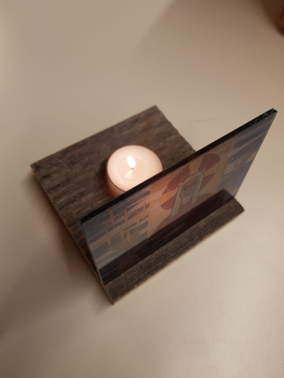 Wer zur Zeit nicht in die Christuskirche kommen kann oder sich das Christusbild mit nach Hause nehmen möchte, dem empfehlen wir das "Christuslicht", das der Kirchbauverein neu im Sortiment hat. Schreiner Markus Geiger hat uns alte Holzbretter aus einem Schuppen seiner Tante Anni zur Verfügung gestellt und zugeschnitten. Sie sind Halter für das Christusbild unserer Kirche, dem ein dahinter gestelltes Teelicht einen warmen Schein verleiht. Für € 12 ist das Christuslicht ein schönes Andenken und Geschenk, nicht nur an Weihnachten. Erhältlich im Rahmen unserer Veranstaltungen (außer Heiligabend). Auf Wunsch versenden wir das Christuslicht auch.